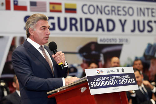 Destacó que en el tema de seguridad pública, es relevante trabajar de manera coordinada y conjunta con los tres órdenes de gobierno, incluyendo a la sociedad, tal como se realiza la instrumentación de la estrategia integral en la materia que considera: la participación ciudadana en la prevención del delito, la innovación y uso de tecnología, la promoción de valores y el fortalecimiento, dignificación y profesionalización del capital humano. Reconoció el interés de la Secretaría de Seguridad Púbica al ejecutar acciones para la dignificación y profesionalización de la función policial que contribuye a que en el Índice de Desarrollo Policial, realizado por la organización Causa en Común, Puebla se encuentre entre las tres corporaciones mejor evaluadas en el país. Durante su intervención, el Presidente Municipal de Puebla, Luis Banck, resaltó que para combatir la impunidad y reducir la incidencia delictiva, en coordinación con los tres órdenes y Poderes de gobierno, se puso en marcha la Mesa de Seguridad y Justicia con la que se ha logrado duplicar el número de detenidos. Antes, añadió, se realizaban 28 detenciones a la semana y ahora alrededor de 57; además se han desarticulado más de 60 bandas dedicadas al crimen organizado; se redujo el índice de impunidad en 78 por ciento; y durante las últimas 12 semanas, de cada 10 presuntos responsables que detiene la policía en la ciudad, 8 pagan consecuencias, en la cárcel o mediante un acuerdo reparatorio con la víctima. Por su parte, el Fiscal General del Estado, Víctor Antonio Carrancá Bourget, señaló que bajo el liderazgo del gobernador Tony Gali se han establecido mecanismos multilaterales para fortalecer la formación policial y subrayó que este estilo de trabajo emana de una prioridad social con intercambio de experiencias y conocimientos probados. El Presidente del Tribunal Superior de Justicia del Estado, Magistrado Héctor Sánchez Sánchez, exhortó a los presentes a utilizar como herramienta la consciencia social como base de la seguridad y la justicia. El Rector de la Benemérita Universidad Autónoma de Puebla, Alfonso Esparza Ortiz, mencionó que la seguridad puede abordarse desde la generación de conocimiento, para fortalecer la formación de elementos de diversas corporaciones, por lo que la Institución que encabeza celebra ser sede del mencionado Congreso. En el evento estuvieron presentes el Presidente de la Junta de Gobierno y Coordinación Política del Congreso del Estado, Carlos Martínez Amador; el Secretario General de Gobierno, Diódoro Carrasco; el Secretario de Seguridad Pública del Estado, Jesús Morales Rodríguez; el Secretario de Seguridad Pública y Tránsito Municipal de Puebla, Manuel Alonso, entre otros.