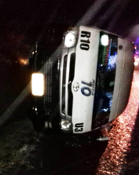 Zacapoaxtla.- Una colectiva de la ruta diez Zacapoaxtla – Xochiapulco, se volcó a la altura de la junta auxiliar de Las Lomas, percance que de acuerdo a la información de vialidad municipal, se debió al exceso de velocidad de parte del conductor, percance que provocó lesiones en los pasajeros.
