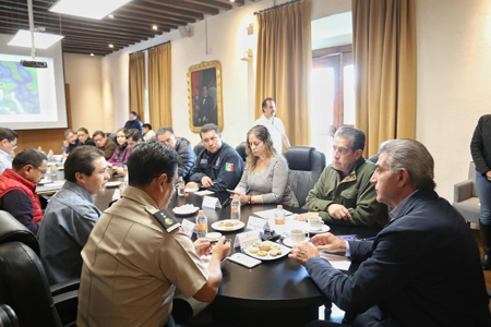 El director general del Instituto de Seguridad y Servicios Sociales de los Trabajadores al Servicio de los Poderes del Estado de Puebla (ISSSTEP), Eugenio Mora Salgado, subrayó que en Acatlán de Osorio fueron desalojados 19 ciudadanos debido a daños estructurales en sus viviendas e indicó que existen deslaves en la carretera estatal Albino Zertuche, así como en la Acatlán- San Juan Ixcaquixtla por fisuras. El director del Comité Administrador Poblano para la Construcción de Espacios Educativos (Capcee), Jorge Cruz, comentó desde Guadalupe Victoria que sólo se refugiaron 34 personas y destacó que en Chichiquila la Comisión Federal de Electricidad restablece el servicio de luz. Además, comunicó que algunas escuelas sufrieron leves afectaciones, así como un ligero derrumbe en un tramo de la carretera de Chichiquila que ya fue liberado. Arturo Flores, Coordinador de delegaciones de la Secretaría General de Gobierno, dio a conocer que los 13 municipios que coordina el Centro de Mando instalado en Zacatlán reportan saldo positivo. Puntualizó que luego de que se presentaran ligeros deslizamientos de tierra en algunas vialidades, éstas fueron inmediatamente reabiertas y no existen comunidades aisladas. El Sistema Estatal DIF, que preside Dinorah López de Gali, distribuyó 50 toneladas de despensas, siete mil 336 botellas de agua, ocho mil 86 kits de limpieza, cinco mil 882 cobertores, cinco mil 389 colchonetas, cuatro mil 75 frazadas y 153 bolsas de ropa. En la sesión participaron el comandante de la 25 Zona Militar, Raúl Gámez; el director de Coordinación de Estados y Municipios de la Dirección General de Protección Civil de la SEGOB, Leonardo González Neri; la delegada de Gobernación en Puebla, Ana Isabel Allende y funcionarios estatales.