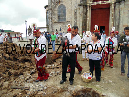 Al salir de la iglesia, los danzantes bailan en el lugar y con incienso colocan la ofrenda en el hoyo, la cual está compuesta por los ingredientes para la elaboración del mole como manteca de cerdo, jitomate, chiles, además, el edil fue el encargado de colocar un guajolote vivo, como lo marca la tradición de esta danza que en el 2009 fue declarada Patrimonio cultural inmaterial de la humanidad.
