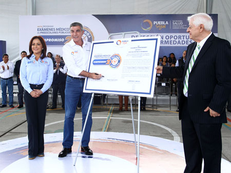 Tehuacán.- El gobernador Tony Gali, acompañado de  la Presidenta del Patronato del Sistema DIF Estatal, Dinorah López de Gali, cumplió el compromiso número 2 del Plan para Puebla: Detección Oportuna de Enfermedades con el inicio del programa Exámenes Médicos en Preescolares Públicos, cuyo propósito es el diagnóstico temprano de padecimientos crónicos en menores para su oportuna atención.