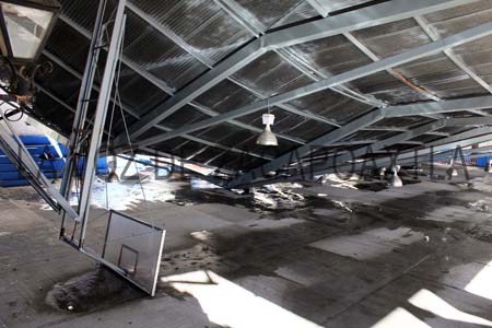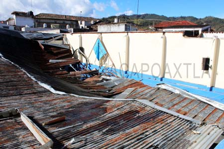 Zacapoaxtla.- El viento generado por el frente frío número 45 provocó la destrucción del techo del auditorio de la Primaria “Carlos Betancourt Molina”, institución a la que asisten más de mil 500 alumnos en los turnos matutino y vespertino, por lo que se suspendieron clases de manera indefinida.