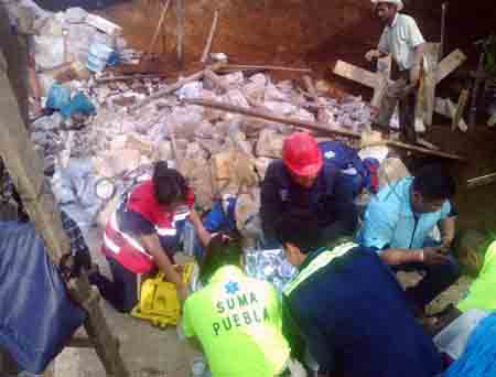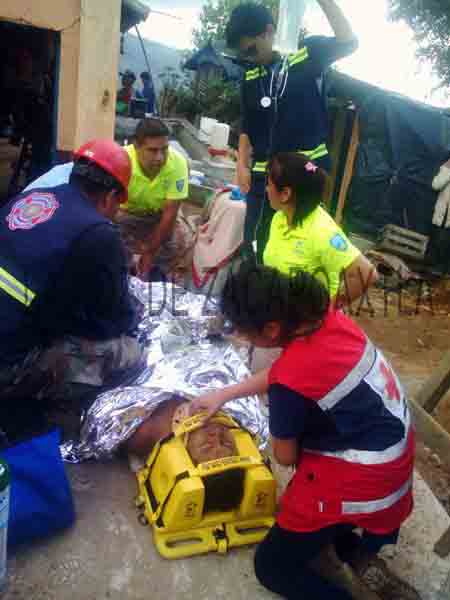En tanto Cristóbal Molina Torres de 25 años de edad, quien tiene domicilio en calle Juan Francisco Lucas Comaltepec Zacapoaxtla, presentaba lesiones de mayor consideración y fue necesario que los paramédicos le colocaran oxígeno para ayudarlo a respirar y de inmediato fue trasladado al Hospital Integral de este municipio. El área fue acordonada y se dio a conocer que por el momento se deberán suspender los trabajos en este inmueble, hasta que realice un dictamen protección civil, ya que el percance se registró por falta de precaución pero también por las fuertes lluvias que se han presentado en la región.