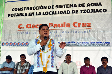 El juez de paz de Tzojiaco Leobardo Bautista López y el Presidente auxiliar de Tzicuilan Salvador García Aguilar, agradecieron al ayuntamiento el respaldo y calificaron de histórica la obra, porque desde hace cerca de 10 años se venía gestionando, sin que nadie los atendiera, hasta que en esta ocasión, el edil Óscar Paula refrendó su compromiso que estableció en campaña y se arrancó esta red de agua la cual esperan terminar en un periodo máximo de tres meses.
