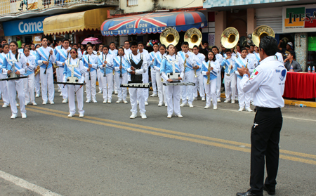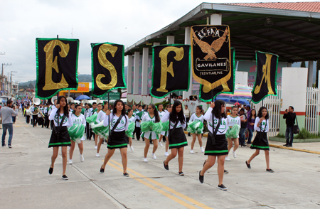 Tras el abanderamiento de las escoltas conformadas por alumnos de esta Primaria, inició el desfile que recorrió las principales calles de Zaragoza y frente al presídium se dio lectura a la reseña de cada una de las banderas de países Latinoamericanos, además de que participaron bandas de música de Zaragoza, Tlatlauquitepec y Teziutlán.
