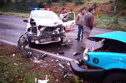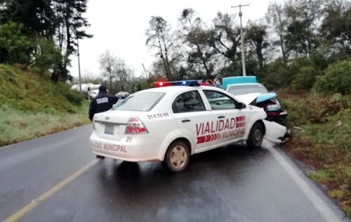 Patrulla de vialidad chocó contra taxi en Zacapoaxtla 13 Febrero 2019