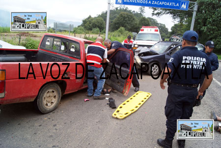 Marisela Díaz Ángeles, de 30 años de edad, quien conducía una camioneta Nissan, color rojo, relató que se dirigía rumbo a Zacapoaxtla, cuando de un camino de terracería salió sin ninguna precaución una camioneta pointer tipo Guayin, color azul marino, invadió su carril y los golpeó en parte derecha de su unidad. Díaz Ángeles resultó con lesiones severas en la pierna derecha y el brazo izquierdo y su madre de 58 años de edad, Ernestina Ángeles Sánchez, tuvo que ser inmovilizada por paramédicos de la cruz roja de esta ciudad, porque presentaba fractura en la pierna izquierda, además de golpes en el rostro, por lo que fueron trasladadas al hospital del Instituto Mexicano del Seguro Social (IMSS) en Zacapoaxtla.