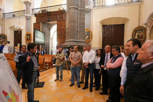 El mandatario visitó el Convento de San Francisco, donde se lleva a cabo la reconstrucción del cupulín así como el sostén de bóvedas y nervaduras, con cimbra de acero a 30 metros de altura, para recuperar la estabilidad del inmueble. En tanto, en la Biblioteca Central Estatal Miguel de la Madrid, Tony Gali constató el apuntalamiento estructural, la terminación de aplanados y pintura en las naves central y laterales. Asimismo, en la Capilla de Dolores verificó la reparación de fracturas, en las que se utilizaron elementos de piedra y tabique; además, se recuperaron pinturas y se dio mantenimiento con hidrofugantes. En el Templo de San Roque, al ser uno de los más dañados por el movimiento telúrico, se cambió el sistema de cubiertas y enladrillado con bases de acero; de igual forma, se tejieron en su forma original pilares, bóvedas, muros y decoraciones. Finalmente, en la Iglesia de la Compañía, se reintegraron arcos, bóvedas y se reedificó la torre y los botareles con acero, para dar mayor resistencia. Acompañaron al Ejecutivo, el Secretario de Cultura y Turismo, Roberto Trauwitz; el Coordinador para la Reconstrucción, Eugenio Mora; el Coordinador Técnico de la Oficina de Sismos del Instituto Nacional de Antropología e Historia (INAH), José Revah; el director del Centro INAH Puebla, Víctor Hugo Valencia y el presidente del Consejo de la Crónica del Estado, Sergio Vergara, entre otros.