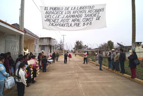 Zacapoaxtla.- El pasado viernes 11 de noviembre a las cuatro de la tarde, se realizó la inauguración de la pavimentación de la calle 6 de Enero en la comunidad de La Libertad, una obra de 344 metros de largo, 6 de ancho y con una inversión superior al millón y medio de pesos.