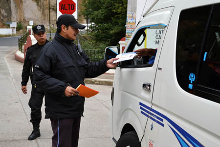 Zacapoaxtla.- Con el objetivo de reforzar la seguridad en el municipio, así como detectar vehículos robados y verificar que los conductores cuenten con su licencia de conducir, la policía municipal en conjunto con la dirección de vialidad y la Policía Estatal Preventiva (PEP), instalaron un operativo en los cruceros de los principales accesos a esta ciudad.