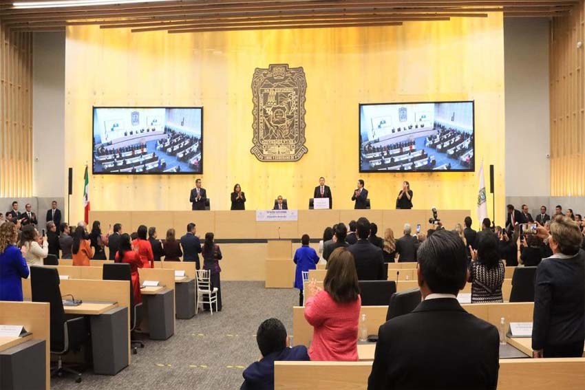Puebla ante el Congreso estatal, relevando al