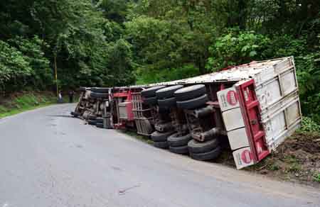 El percance se registró en el kilómetro 17+100 de la vía estatal, cuando el conductor de la unidad modelo 2014 con placas 52-AC-6K del servicio de carga, perdió el control cuando circulaba en una curva con dirección al municipio de Zacapoaxtla y se volcó sobre su costado derecho con más de 25 toneladas de mango. Paramédicos de Xochitlán acudieron al lugar y brindaron atención médica al chofer Juan Manuel Medina, quien comentó que al llegar a la curva, lo pesado de la carga provocó que el remolque con placas 80-TX-7M se cargara a su costado derecho y le fue imposible evitar la volcadura.