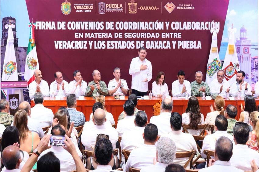 Veracruz, Ver.- En un esfuerzo conjunto por garantizar la paz y la seguridad en la región, los gobiernos de Puebla, Veracruz y Oaxaca reafirmaron su compromiso con el combate a la delincuencia, la coordinación interinstitucional y la premisa de cero impunidad. Con el respaldo de la Guardia Nacional, la Secretaría de la Defensa Nacional y la Marina, los tres estados unen acciones para enfrentar los desafíos en materia de seguridad y justicia.