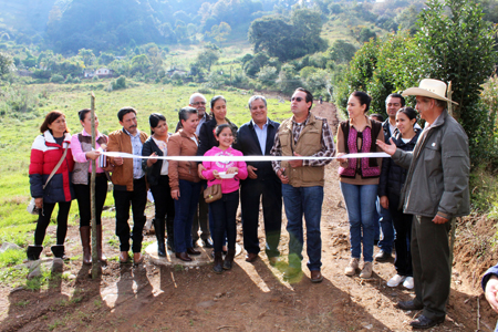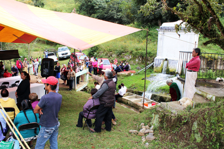 El alcalde arribó a la colonia, donde se realizaron dos cortes del listón, el primero en la zona baja a un costado de la capilla de la colonia y el segundo tras emitir su mensaje ante los vecinos que se reunieron en la parte alta del Cerro de Los Cristales, ya en los límites con la junta auxiliar de Comaltepec.