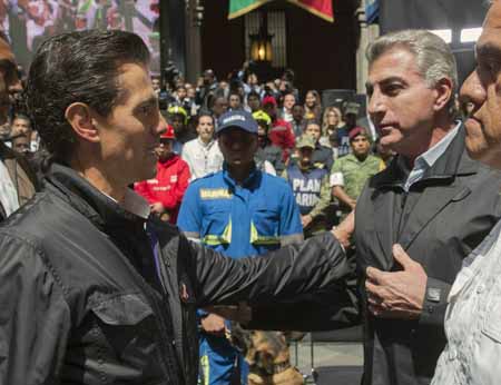 Ciudad de México.- El gobernador Tony Gali participó en la entrega de reconocimientos a 19 equipos de búsqueda y rescate, que encabezó el Presidente de la República, Enrique Peña Nieto, en Palacio Nacional.