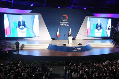 Acompañado de su esposa, la Presidenta del Patronato del Sistema Estatal DIF, Dinorah López de Gali, de sus hijos Tony, Edy y Dinorah y con la presencia de la Secretaria de Desarrollo Agrario, Territorial y Urbano (Sedatu), Rosario Robles, en representación del Presidente de la República, Enrique Peña Nieto, también se comprometió a mantenerse en absoluto apego a la ley ante la proximidad del proceso electoral. Entre sus logros destacó que, Puebla mejoró en los indicadores que miden el bienestar social, de acuerdo a los resultados publicados por el Coneval, pues obtuvo el primer lugar en servicios básicos y calidad de espacios en la vivienda; el segundo en acceso a seguridad social y educación, y el tercero en servicios de salud. Así como la primera posición en la reducción de la población en situación de pobreza extrema, logrando que más de 400 mil poblanos salieran de esta condición. Resaltó que en materia educativa se ha colocado a la vanguardia en la enseñanza en el nivel medio superior, de acuerdo a los resultados del examen del Plan Nacional para la Evaluación de los Aprendizajes (PLANEA), además indicó que se reincorporó la materia de Civismo, la estrategia “Puebla Convive” y la campaña “Donde hay un Poblano hay Compromiso”. Detalló que, en coordinación con el Consejo Nacional de Fomento Educativo, entregó 375 mil paquetes de útiles escolares en dos mil 751 escuelas primarias de educación general e indígena. También informó que, en apoyo a la economía de los padres de familia, se inició la repartición de más de un millón de uniformes para estudiantes de primaria y secundaria, por un monto de 243 millones de pesos y, por primera ocasión, incluyen zapatos escolares. Enfatizó que se equiparon más de mil Aulas de Medios en 186 municipios y se favoreció a más de 10 mil estudiantes con el Programa Becas Nacionales para la Educación Superior. Además, se destinó una inversión de 960 millones de pesos en 420 escuelas para mejorar los espacios educativos y se inauguró el Instituto de Profesionalización del Magisterio Poblano, que tuvo un costo de 60 millones de pesos. En el tema de salud, el Ejecutivo subrayó que Puebla ocupa los primeros lugares en el Índice de Calidad de la Atención de la Diabetes, el Ranking de Detecciones de Hipertensión Arterial y en las pruebas aplicadas para la obesidad. También destacó que se logró que 10 hospitales obtuvieran la denominación: “Hospital Amigo del Niño y de la Niña”; se redujo en 32.3 por ciento la razón de mortalidad materna; se aplicaron más de 45 mil estudios de cáncer de mama y en materia de detección de cáncer cérvico-uterino más de 67 mil citologías. Resaltó que como parte de las medidas a favor de la niñez y la adolescencia, se sumó a los esfuerzos del Presidente de la República, Enrique Peña Nieto, a través del Sistema Estatal de Protección Integral de Niñas, Niños y Adolescentes y se inauguraron las Casas Jóvenes en Progreso, además con el programa de desayunos escolares, en su modalidad “´fría”, se otorgaron 34 millones de raciones alimentarias y en su modalidad “caliente”, 46 millones 607 mil, en beneficio de casi 500 mil niñas y niños. Mencionó que promueve el autoempleo y el fortalecimiento de las capacidades para la mujer, con lo que ha entregado más de 15 mil apoyos productivos por 37 millones de pesos a las poblanas emprendedoras. Enfatizó que se instaló el Sistema Estatal para prevenir, atender, sancionar y erradicar la violencia contra las mujeres” y se implementó la estrategia “De una Vez por Todas”. Notificó que se creó el Instituto Poblano de Asistencia al Migrante y se dio continuidad al programa “Raíces de Puebla”, con el que más de 172 familias han podido reencontrarse con sus seres queridos. En materia deportiva, se efectuó el Maratón Internacional de Puebla en el que participaron 35 mil corredores y destacó los logros de los deportistas poblanos con discapacidad quienes en los Juegos Deportivos Nacionales obtuvieron 17 medallas de oro, 14 de plata y 3 de bronce. Señaló que se otorgaron apoyos al campo con las estrategias destinadas a la seguridad alimentaria, la reconversión productiva, la capacitación y asistencia técnica, la mecanización de pequeñas superficies y los Insumos a Tiempo, acciones que representaron una inversión de casi 100 millones de pesos en beneficio de más de 34 mil productores. Indicó que la entidad se ubica en la segunda posición con la mejor actividad económica del país teniendo en 2017 un crecimiento del 8.6 por ciento. Anunció que gracias a la llegada de la Industria Militar seguirá impulsando la creación de más empleos. En la promoción de la cultura y el turismo se obtuvo un crecimiento cercano al 3 por ciento en la afluencia de visitantes con relación a 2016 al registrarse la llegada de más de 14 millones de turistas quienes trajeron consigo un incremento del 3.95 por ciento en la derrama económica, respecto a 2016. Además, dijo que medios internacionales como The Wall Street Journal, la cadena CNN o la revista especializada Departures, colocaron a Puebla entre los destinos más atractivos del mundo para ser visitados en 2018.