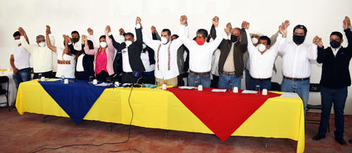 Zacapoaxtla.- La mañana de este 15 de mayo, ciudadanos se reunieron con el candidato a la Presidencia Municipal por los partidos PRI, PAN y PRD, Evelio Navarro Lara, a quien le entregaron propuestas y proyectos de trabajo, desarrollados con el objetivo de que Zacapoaxtla cuente con mejor desarrollo.