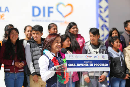 Durante su intervención, la Presidenta del Patronato del SEDIF destacó que el modelo Casa “Jóvenes en Progreso” surge para brindar a la niñez y juventud poblana un espacio que responda a sus necesidades, que los proteja y garantice el ejercicio pleno de sus Derechos Humanos. “Sabemos los complicados retos que enfrenta este sector de la población, por lo que hoy estamos sumando esfuerzos para resolverlos juntos y comenzar a construir un mejor futuro para todos ustedes”, señaló. Apuntó que con la operación de este inmueble se beneficiará a más de 77 mil personas de la región, con diversos programas y servicios en materia de salud, educación y empleo, ofreciendo además alrededor de 100 cursos y actividades deportivas, artísticas y culturales. Dinorah López de Gali añadió que, además, los beneficiarios podrán cursar los talleres de tejido de estambre y cotones, así como la elaboración de artesanías de ocoshal, para apoyar la economía local.