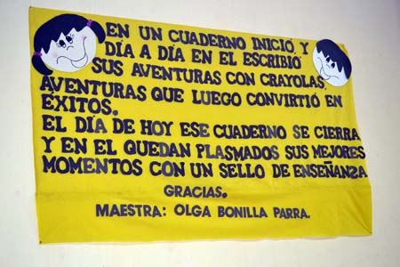 “Hoy que de esta escuela te marchas Maestra, en busca de nuevos horizontes del saber, sea luchadora, estudiosa y tesonera, al prepararse para cumplir con su deber y mañana que regrese a esta escuela al igual que las golondrinas triunfadoras, con luz brillante dejará su bella estela y del progreso, será la forjadora”,… fragmento de la poesía que fue dedicada a la Maestra durante el programa de despedida.