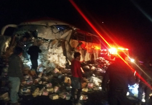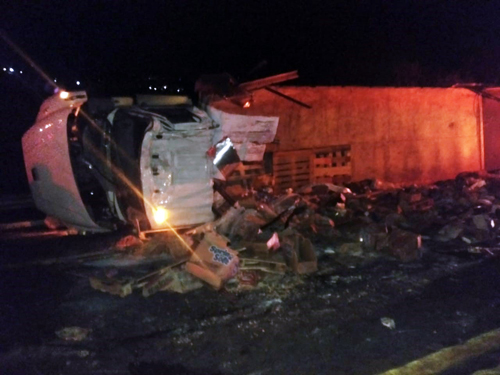 Se informó que el choque se debió a que el conductor del camión de abarrotes perdió el control e invadió el carril contrario, lo que derivó en la volcadura de la unidad que transportaba mercancía a un centro comercial de Teziutlán, percance que dejó dos lesionados del camión, en tanto que el conductor se dio a la fuga.