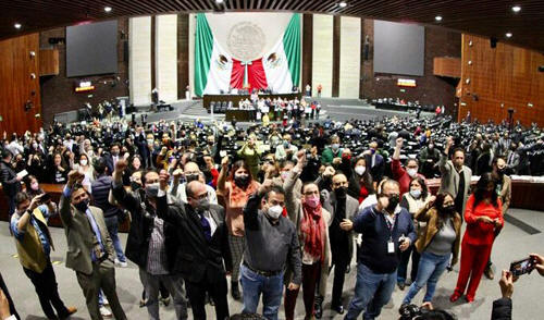 México.- Durante la sesión ordinaria de este 15 de febrero, comunicadores dieron la espalda al pleno con el puño arriba. Se pidió un minuto de silencio por los informadores que han muerto.