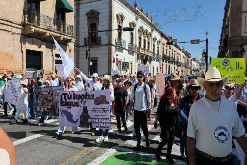 gritaban “¡Fuera Claudia!”, “¡Fuera Bedolla!”,