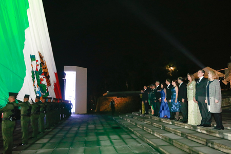 En presencia de los representantes de los poderes Legislativo y Judicial, Jorge Aguilar Chedraui y Roberto Flores Toledano, respectivamente, el Ejecutivo expresó su solidaridad ante la situación que enfrenta el país y rindió homenaje a los héroes que dieron libertad a México.