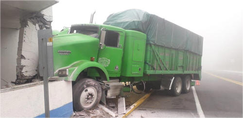 17 Marzo 2019 Zaragoza.- Debido a una falla mecánica, un camión tipo tórton chocó contra el módulo de sanitarios que se ubican a la altura de la anterior caseta de cobro en el municipio de Zaragoza, sobre la autopista San Antonio Virreyes – Teziutlán, hechos ocurrieron aproximadamente a las 14:45 horas de este 16 de marzo. El chófer originario de Apizaco, Tlaxcala de 30 años de edad de nombre Alejandro Aguilar "N.", sufrió varios golpes de consideración, por lo que fue atendido por elementos de protección civil de Zaragoza al mando de Rolando Arenas Cárcamo. Posteriormente arribaron elementos de vialidad estatal con sede en Tlatlauquitepec para tomar conocimiento de este percance. De acuerdo a versiones policíacas la pesada unidad de la marca Kenworth se quedó sin frenos en una pendiente cuando circulaba rumbo a la ciudad de Puebla, por lo que el chófer decidió estrellar el camión antes de provocar un accidente mayor.