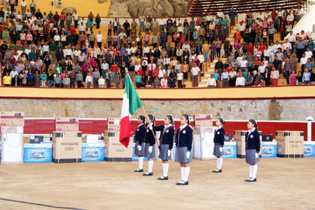 17 Mayo 2013 Zacapoaxtla.- Con la aportación de 95 mil pesos por parte del ayuntamiento para la rifa de cerca de 70 aparatos electrodomésticos, se realizó este viernes en la plaza de toros, el festejo del día del maestro, en donde el edil Armando Sánchez Jiménez, informó que para el mes de septiembre entregará un terreno para vivienda de los profesores y para la construcción de la clínica del ISSSTE.