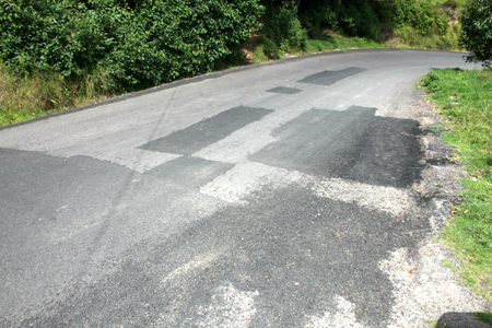 Juan Contreras Hernández, juez de paz de la junta auxiliar de Las Lomas, dijo que los trabajos no se realizaron con la calidad necesaria y como muestra mostró baches en la entrada de la junta auxiliar, en donde los trabajadores de la empresa Trasecol, Sociedad Anónima de Capiral Variable (SA de CV), solo arrojaron material sobre la carpeta anterior, el cual ya fue arrastrado por las lluvias.