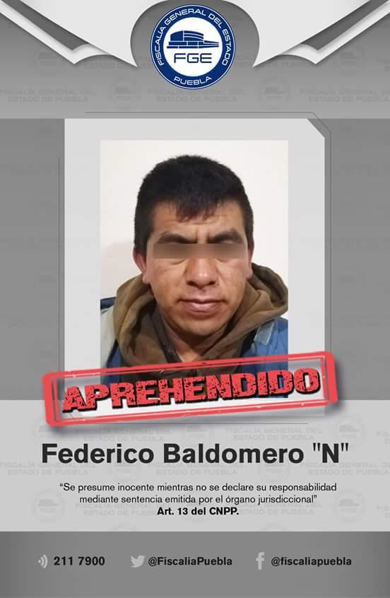 Al obtener la orden de aprehensión se continuó con las investigaciones dando seguimiento a las posibles actividades de Federico Baldomero, montando guardia discreta en diferentes puntos, lo cual permitió su ubicación y detención en Zacapoaxtla. Cabe señalar que Baldomero tenía en su poder pertenencias de la víctima incluido el teléfono celular.