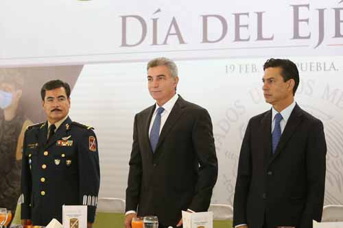 Tony Gali reconoce labor del Ejército Nacional 19 Febrero 2018 Puebla.- Al conmemorar el Día del Ejército Mexicano, el gobernador Tony Gali reconoció el trabajo, dedicación y compromiso de las fuerzas castrenses, para defender y garantizar la seguridad de las familias, así como su pronta respuesta para atender contingencias. Estuvieron presentes el Magistrado Presidente del Tribunal Superior de Justicia, Héctor Sánchez; el Presidente de la Junta de Gobierno y Coordinación Política del Congreso del Estado, Carlos Martínez; el Comandante de la XXV Zona Militar, Raúl Gámez; el Secretario General de Gobierno, Diódoro Carrasco; la titular de Educación Pública, Patricia Vázquez; el Secretario de Seguridad Pública, Jesús Morales; el Fiscal General del Estado, Víctor Carrancá; el alcalde de Puebla, Luis Banck, entre otros invitados.