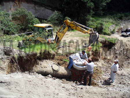 Durante 16 días, grupos de materialistas y habitantes, cooperaron para la reconstrucción de este tramo y en primer término gastaron 24 mil pesos para la tubería que se colocó en el colector de agua pluvial, el cual fue el que se reventó y destruyó la carretera durante el paso del huracán Ingrid del 12 al 15 de septiembre pasado.