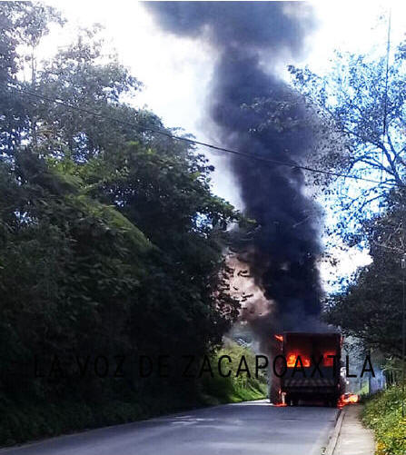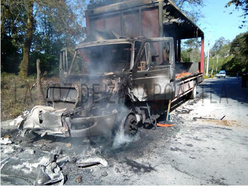 Se incendia camión en la Zacapoaxtla - Cuetzalan