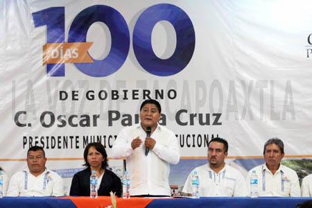 Dentro de los primeros 100 días se han iniciado obras importantes, un ejemplo de esto es la construcción de la unidad deportiva de San Miguel Tzinacapan, en este espacio se habilitará una cancha de futbol rápido, una cancha de basquetbol totalmente techada, además se edificaran módulos sanitarios con servicios de agua potable y drenaje.