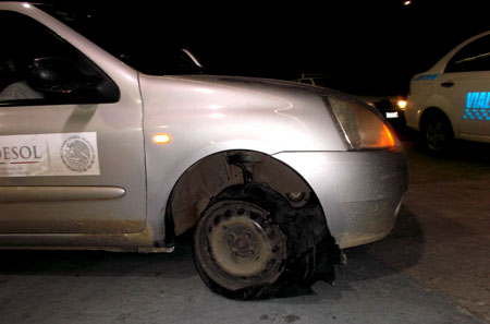 Además del conductor, en la unidad con placas de circulación TZE-6617 del estado del Puebla y con la leyenda al frente de “México Gobierno de la República”, viajaban otro hombre y dos mujeres con síntomas de haber ingerido bebidas alcohólicas, a quienes los elementos les pidieron que bajaran del automóvil color gris, para su aseguramiento y su traslado al corralón. Se informó que la unidad presentaba la llanta delantera derecha totalmente deteriorada y el vehículo fue rodado por varios kilómetros solo con el rin, lo que provocó daños en la suspensión de este vehículo oficial que fue infraccionado de acuerdo a los artículos 67 y 70 del reglamento vigente en este municipio.