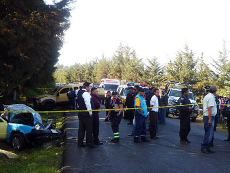 El accidente se registro aproximadamente a las 14:00 horas y hasta el momento se continuan realizando las diligencias por parte de ministeriales para el levantamiento de los cuerpos, por lo que aun no se a informado de los fallecidos, aunque se sabe que se trata de tres hombres y una mujer, además de un menor de tan solo 8 años de edad los que perdieron la vida.