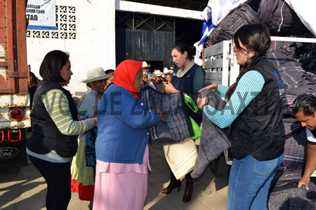 Margarita Lobato Toral, presidenta del DIF municipal presidió el evento y dijo que con apoyo de la titular del Sedif Martha Érika Alonso de Moreno Valle, se distribuyó el apoyo, el cual se entregó a los adultos de las comunidades de La Libertad, Texocoyóhuac, Ixtacapan, Mazapa y Gonzalo Bautista, en donde se tienen registros de temperaturas de hasta cinco grados bajo cero.