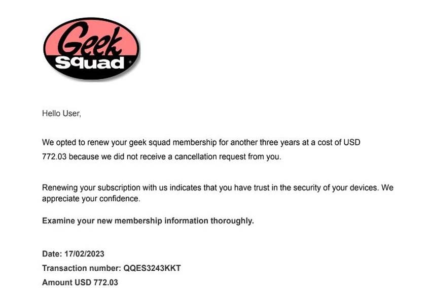 ¿Qué es la estafa por correo electrónico "Geek Squad"?