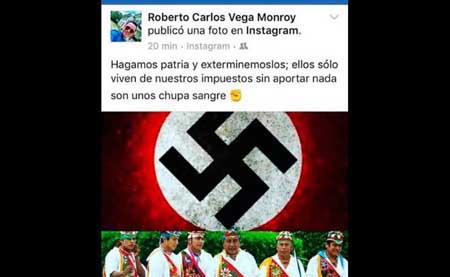 "Hagamos patria y exterminémoslos; ellos solo viven de nuestros impuestos sin aportar nada son unos chupa sangre", fue el mensaje que se lee en su red social seguido de una imagen con la bandera nazi y personas identificadas como voladores de Papantla. El senador de la República por el estado de Veracruz, Héctor Yunes Landa, solicitó mediante un escrito al gobernador de Puebla, Antonio Gali Fayad, el cese de un funcionario de la SEP en Puebla, quien dijo que los voladores de Papantla tenían que ser “exterminados” porque “no aportan nada al país”, “viven de los impuestos de los demás” y “son unos chupasangre”. Posteriormente, la Secretaría de Educación Pública (SEP) en Puebla, informó que Roberto Carlos Vega Monroy, del área de Telesecundarias habría sido despedido y que “reprobaban” las expresiones que había hecho. Son unos chupa sangre, dice funcionario de la SEP Recientemente, el ahora extrabajador de la SEP publicó en sus redes sociales un video en el que arremetió contra los voladores de Papantla, al decir que “eran unos chupa sangre” y que “vivían de los impuestos de los demás”. Además, dijo, que se debían de “exterminar”, ya que no aportaban nada a la sociedad mexicana. Funcionario de la SEP debería estar con Trump, dijo Yunes en su carta En la carta que envió al mandatario estatal, Héctor Yunes reprobó las expresiones de Vega Monroy y dijo que éste debería “estar con Trump”por sus ofensas a un estado con una importante población indígena, y en especial a los voladores de Papantla quienes han sido declarados por la UNESCO como Patrimonio Cultural Intangible de la Humanidad. Dijo que las palabras del funcionario de la SEP en Puebla violentaban la convivencia y hermanamiento entre ambas entidades federativas, por lo que exigió el cese inmediato del funcionario para que el gobierno de Puebla demostrara su vocación humanista. En la carta, el senador recordó que en Veracruz se trata con respeto a los poblanos, e incluso, dijo, en el gabinete de Miguel Ángel Yunes han sido incorporados varios poblanos. Por órdenes de Gali cesan a Vega Monroy