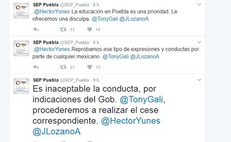 Además, manifestó que reprobaban este tipo de actos y conductas de cualquier mexicano y se analizará la situación de esta persona que además es director comisionado en una Telesecundaria del municipio de Cuetzalan y encargado de la UniPuebla, campus Tlatlauquitepec.