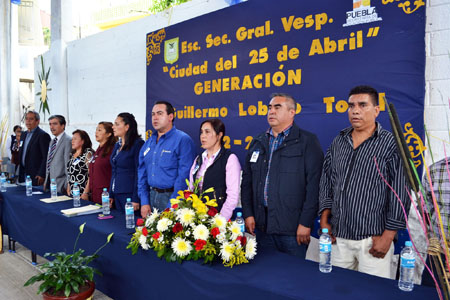Zacapoaxtla.- Con una inversión de 909 mil pesos, el presidente municipal Guillermo Lobato Toral presidió la inauguración de dos aulas y un salón de usos múltiples, en donde además de presidir la entrega de documentos a los alumnos de la generación 2012 – 2015, se inauguró la construcción de los espacios educativos.