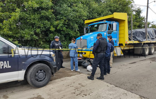 Al lugar arribaron elementos de la Secretaria de Seguridad Pública de esta ciudad, para tomar conocimiento de que se trataba de un choque frontal, el cual dejo desafortunadamente sin vida un masculino que circulaba a bordo de una motoneta color rojo. De acuerdo al protocolo policial, el área fue acordonada por las autoridades, esto para no contaminar la escena del accidente entre la motocicleta y un camión tipo plataforma, color azul, repartidor de material para construcción. Fue el mismo conductor de la pesada unidad quien manifestó que el motociclista invadió el carril contrario hasta chocar de frente contra el camión. Desafortunadamente el varón de aproximadamente 65 años de edad perdió la vida de manera inmediata tras el choque frontal y permanece en calidad de desconocido.