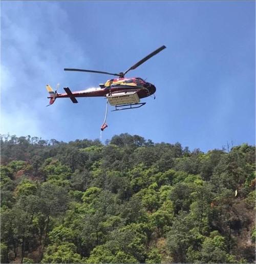 Aeronave cisterna combate incendio en Zacatlán · El fuego no representa ningún riesgo para la población: Protección Civil Estatal. · Cinco incendios más se encuentran activos en diversos puntos de la entidad. 21 Abril 2019