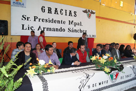 Ante los cerca de mil alumnos y los padres de familia, el Presidente informó que en lo que va de la administración se han destinado cerca de 20 millones de pesos en espacios deportivos y más de 27 millones para espacios educativos, además de que reiteró que en este 2013 se construirá un espacio de deporte al aire libre en la zona de la ciudad donde se encuentra la secundaria 5 de mayo.