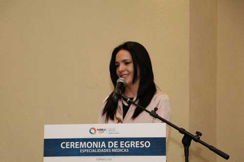 Puebla.- La formación de profesionales contribuye al bienestar de la sociedad, subrayó Arely Sánchez Negrete, Secretaria de Salud, al encabezar la ceremonia de egreso de 132 médicos que durante tres y cuatro años cursaron alguna especialidad en los hospitales del gobierno del estado.