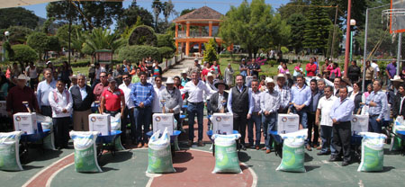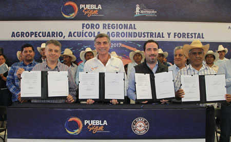 Por su parte, el director general del Comité Administrador Poblano para la Construcción de Espacios Educativos (Capcee), Jorge Cruz Bermúdez, indicó que se edificaron y equiparon ocho aulas, y se construyó la plaza cívica de la primaria Venustiano Carranza, en beneficio de 200 alumnos. En la gira de trabajo, el Ejecutivo encabezó el Foro Regional Agropecuario, Acuícola, Agroindustrial y Forestal en Xochiapulco, donde entregó mil 167 paquetes de herramientas a los productores de la zona. También 30 mil 136 plantas de aguacate, café, higo y vainilla; 74.4 toneladas de fertilizante y más de mil cheques por contingencias climatológicas, con una inversión de 5.5 millones de pesos. Adicionalmente, suscribió un convenio de agricultura por contrato entre cafeticultores y la empresa Colibrí, que asegura la comercialización de 142 toneladas de café de manera directa, eliminando a los intermediarios.