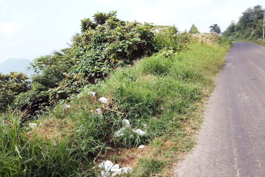 orilla de la carretera y arrojan bolsas y