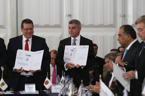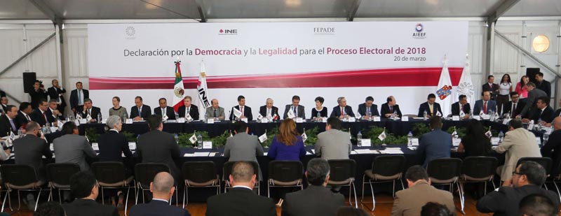 Con la presencia del Presidente de la Conago y titular del Ejecutivo en Tabasco, Arturo Núñez; de la Magistrada Presidenta del Tribunal Electoral del Poder Judicial de la Federación, Janine Madeline Otálora; del titular de la FEPADE, Héctor Díaz; del Consejero Presidente del INE, Lorenzo Córdova y del Consejero Presidente del Instituto Nacional Electoral de la Ciudad de México y Presidente de la AIEEF, Mario Velázquez; los mandatarios reiteraron su compromiso con la democracia.
