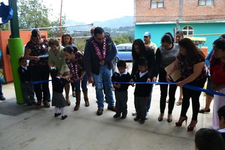 En la Primaria “Adolfo López Mateos” se cortó el listón del aula equipada por un monto de 492 mil 993 pesos de ramo 33, adicionalmente se aportaron 17 mil 632 pesos de recursos propios para el mobiliario, espacio que informó el director del plantel que serán para la instalación de una Biblioteca. En esta comunidad, el edil dijo que se inició la pavimentación con concreto hidráulico del camino principal, que inicia en la Secundaria Técnica de Xalacapan, hasta 400 metros hacia San Juan Tahitic, obra que dijo que continuará para el próximo año y se pavimentará hasta la localidad de Xilita. Efrén Tirado Rivera, director del plantel, externó su agradecimiento por esta obra, en donde dijo que se trabajará para fomentar en los alumnos el gusto por la lectura, fomentar hábitos de lectoescritura y favorecer la convivencia escolar, Biblioteca que dijo que no es un lujo, sino una necesidad para fomentar la lectura que se ha perdido en la actualidad.